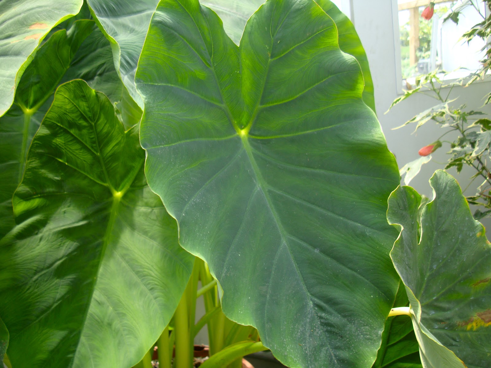 In this picture the taro leaves are uncurling and unrolling into leaves. They can be picked up before the leaves is opened up. |